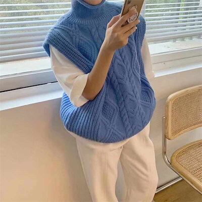レイヤード 40代 ケーブル カジュアル セーター ニットベスト レイヤードベスト ハイネック 秋冬 ニット 20代 ゆったり 秋 レディース ハイネック ジレ 秋物 タートルネック チョッキ 大きい