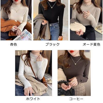 防寒 可愛い インナー 長そで プルオーバー 冬 黒 カットソー 長袖 リブニット 春 ベーシック タイト インナーニット ストレッチ レディース トップス フリル 秋 ハイネック プチハイネック 秋