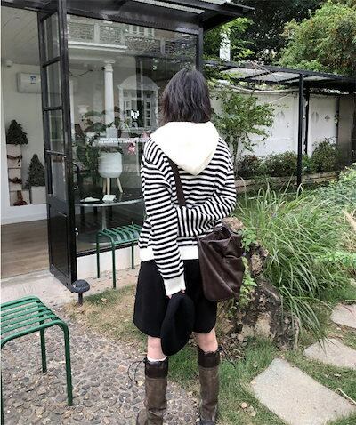 長袖トップス セーター トップス ドロップショルダー ニットセーター レディース ゆったり 厚手 通勤 ニットウェア ニットトップス カットソー パーカー 通学 フード付き プルオーバー 冬 ボーダー