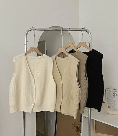 ノースリーブ 秋冬 ジレ 大人 前開き Vネック ニットベスト レディース インナー ベスト 普段着 ニットセーター アウター ニット レイヤード ゆったり 重ね着 セーター カーディガン カジュア