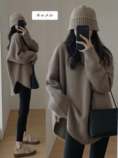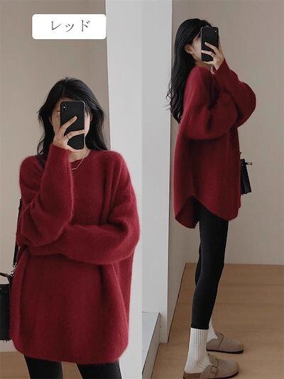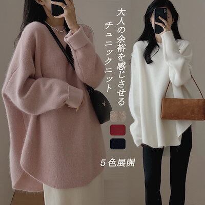 カットソー チュニック丈 レディース ドルマン袖 セーター ニットセーター 体型カバー ニット 秋冬 長袖 可愛い スリット 冬物 ロングニット 暖かい オーバーサイズ 着痩せ ニットチュニック もこ