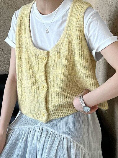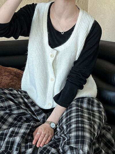 セーター ニット ベスト 秋服 ラウンドネック コーデ カジュアル ゆったり ニットセーター レディース ジレ ショート丈 秋 お洒落 重ね着 ニットベスト 春秋 ノースリーブ 柔らか 無地 トップス