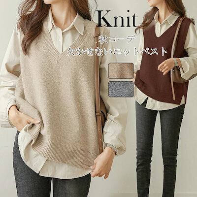 20代 無地 リブニット 可愛い 柔らかい チョッキ セーター レディース 冬 秋 シンプル ニットセーター お洒落 30代 vネック 通学 トップス ニット ベスト ニットベスト プルオーバー ニッ