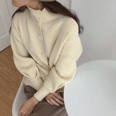 部屋着 デザイン スタンドネック タートルネック レディース カットソー トップス 前開き ニットセーター ハイネックセーター 立ち襟 お洒落 通学 通勤 カーディガン セーター カジュアル風 無地