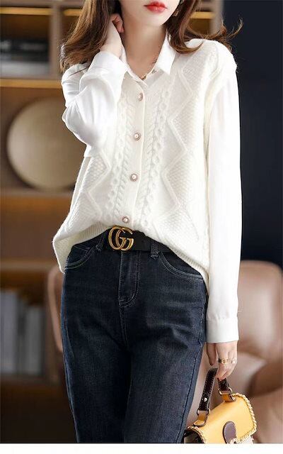 きれいめ ノースリーブ 可愛い ボタン留め Vルネック 重ね着 ニットトップス カーディガン セーター ドルマン ベスト ゆったり レディース ニット セーター 前開け レイヤード 春秋 ドルマンスリ