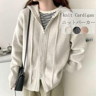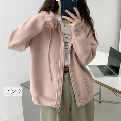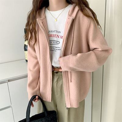 無地 通学 秋 ニットアウター アウター 長袖 ニット トップス セーター ジャケット ショート丈 ニットセーター ニット レディース ファスナー お洒落 ライトアウター 秋冬 通勤 セーター 前開き