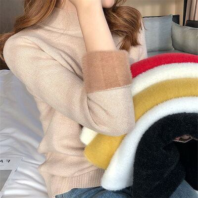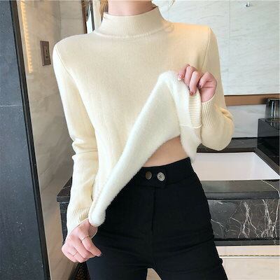 無地 タートルネック セーター ホワイト 裏ボア 裏起毛 通学 レディース 裏起毛ニット ハイネック 柔らかい 防寒 カットソー ニット プルオーバー ハイネック 通勤 厚手 ニットソー シンプル シ