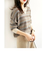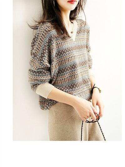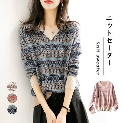ベーシック プルオーバー vネック 花柄 ゆったり カジュアル 重ね着 秋冬 上品 トップス 長袖 ニット 20代 シンプル レディース インナー 30代 柔らかい セーター ピンク ニットセーター