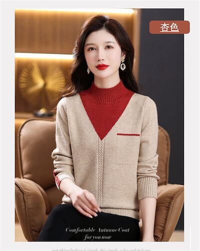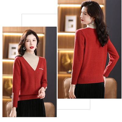 お洒落 防寒 トップス レディース セーター 長袖ニット タイト 秋冬 秋 ブラウス インナーニット 配色 vネック カットソー ニットセーター リブ編み コーデ ニット リブニット 防寒ニット ター