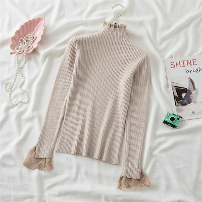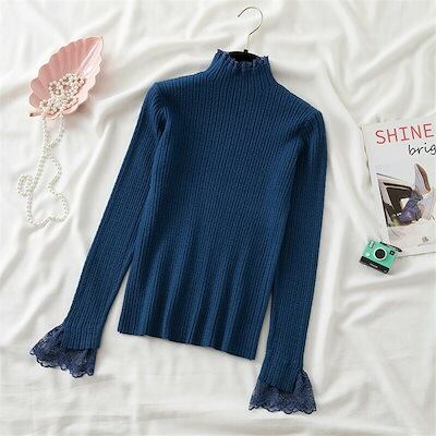 ニット ニットソー プルオーバー タートルネット コーデ リブ編み ストレッチ セーター 柔らかい 無地 レディース 冬 レース ニット ニットセーター カットソー インナー ハイネック 切替 防寒