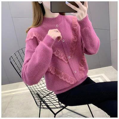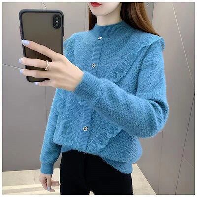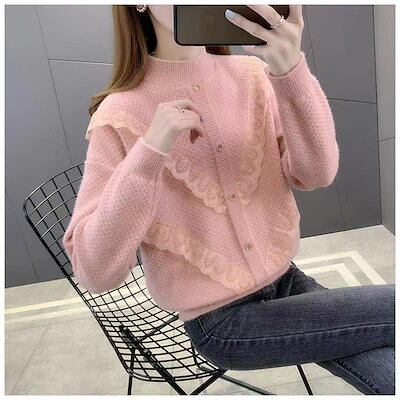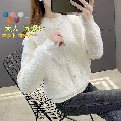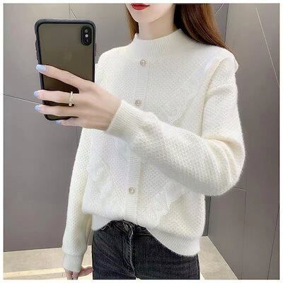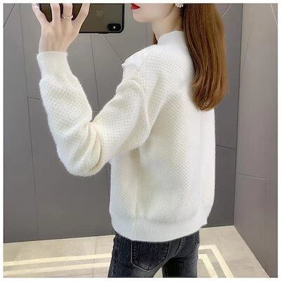 冬物 レディース カットソー 体型カバー トップス ニットセーター プチハイネック コーデ クルーネック 可愛い ゆったり ニットソー ニット 無地 長袖 リブニット 冬 暖かい モコモコ 柔らかい