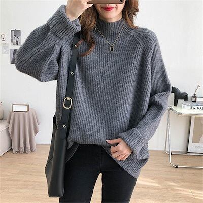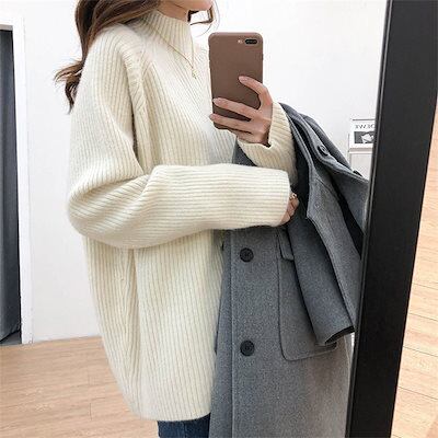 レディース オシャレ コーデ 無地 ニット お洒落 レイヤード 長袖ニット セーター 秋 ハイネック きれいめ プルオーバー チュニック 可愛い セーター トップス ニット 長袖 ニットソー カットソ