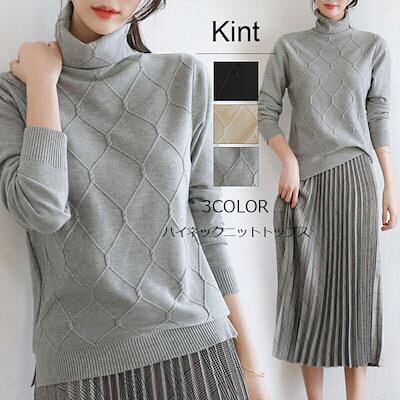 リブニット 長袖 インナー プルオーバー ニット 無地 ベーシック 柔らかい ニットセーター ながそで ニット きれいめ タートルネック 通学 レディース ハイネックニット エレガント カットソー ト