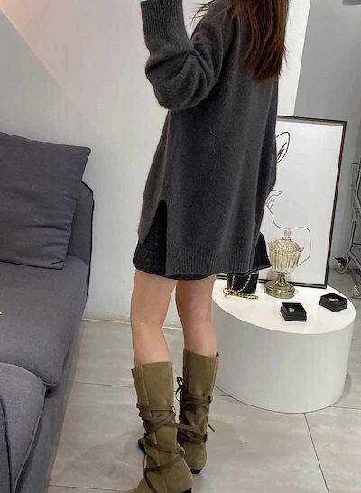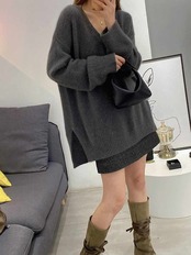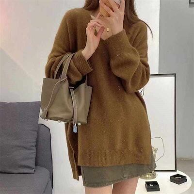 冬 ゆったり 長袖 体型カバー コーデ きれいめ シンプル vネックセーター チュニック 長袖ニット 無地 ニットソー ロングニット 50代 セーター サイドスリット vネック 秋冬 40代 レディー