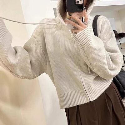 カーディガン 通勤 ニットコート ニット 秋 秋冬 お洒落 フード付き 前開き ニットアウター 無地 ニット トップス ライトアウター 通学 ニットセーター レディース ジャケット セーター 秋物 長