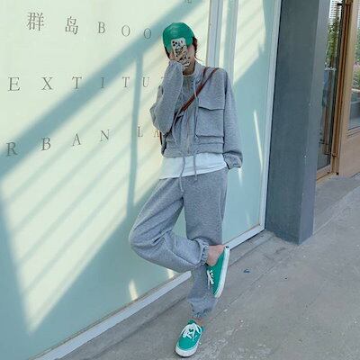 セットアップ レディース 上下セット グレー かっこいい おしゃれ 大人可愛い プルオーバー ジャージ スウェット パンツ ツーピース ジョガーパンツ スポーティー 長袖 パーカー フード無 無地 ラ