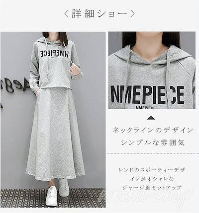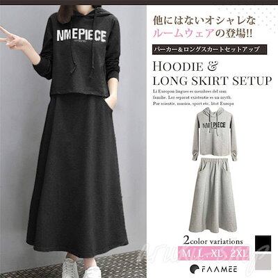 スウェット 長袖 運動風 フード付き 秋服 上下セット スウェット+スカート ロング ジャージ マキシワンピース レディース