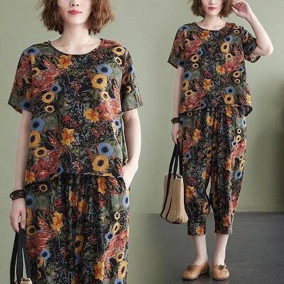 「ファットガール」 民族風 上下セット 春夏 レディース 大人 30代 40代 体型カバー 大きいサイズ セットアップ 中華風 ジャージ 卒業式 ママ フォーマル スーツセットアップ 15 メガ割30