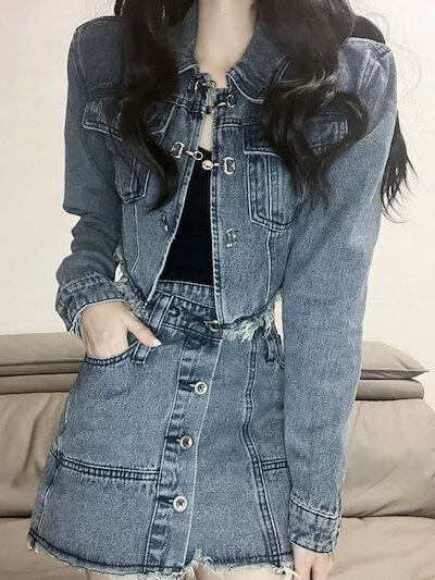 2024 9月 新作 デニム レトロ 小柄 セットアップ レディース スウェット上下セット スカート運動セットカジュアル ゆったりスウェット 2点セット 韓国ファッション 人気 レディース