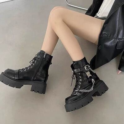 ブーツ ダーク系 韓国版 ありのまま パンク厚底 ショートブーツ レディー 2024年 秋 新しい あちこち かさ上げ ショートブーツ