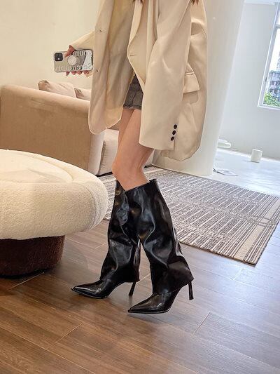 ブーツ ロングブーツが復活!高筒 長靴 レディー 秋と冬 なめし皮 ハイヒール ファッション 気質 長靴 韓国ファッション