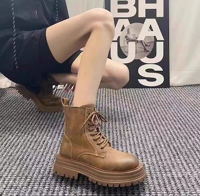 【3日以内出荷】ブーツ 厚底 マーチンブーツ 女性 2024 秋の新作 ミラドールスタイル ラウンドトゥ ショートブーツ イエローブーツ 韓国ファッション
