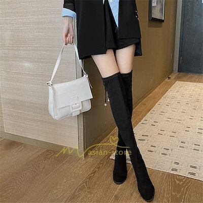 ロングブーツ レディース ニーハイブーツ ロング丈 ポインテッドトゥ ストレッチ スエード調 太ヒー