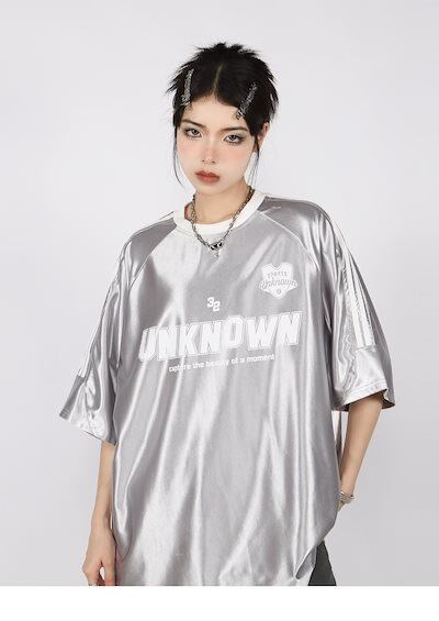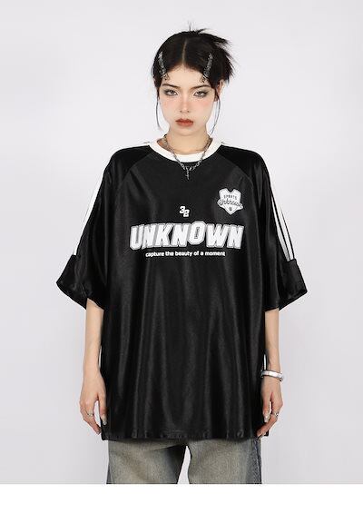 2024夏 韓国可愛い風トップス Tシャツ ファッション 半袖 スリムフィット サイド ペイントシルエット ゆったり丈 休日レディースサイズ韓国Vネック おしゃれ カジュアル メンズライク T