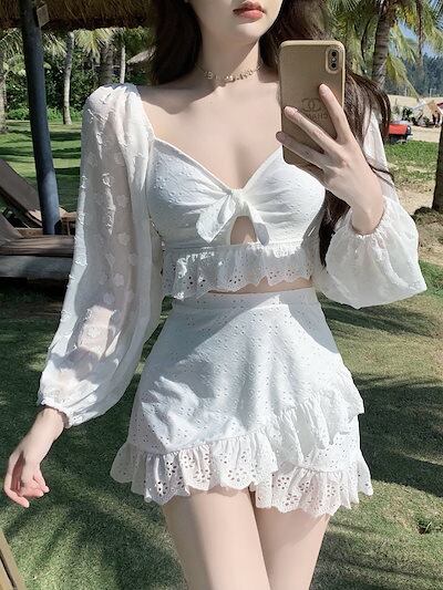 2024 水着 ビキニ 韓国ビキニ 体型カバー水着 韓国水着 ハイウエスト スイムウェア 美脚 脚長 スタイルアップ 大人女子