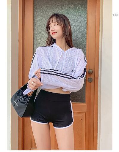 2色 水着 レディース 体型カバー ビキニ 3点セット かわいい ワンポイント カジュアル 長袖 メッシュ Tシャツ キャミソール ショートパンツ タンキニ スポーティー 韓国 水着 ハイウエスト ト
