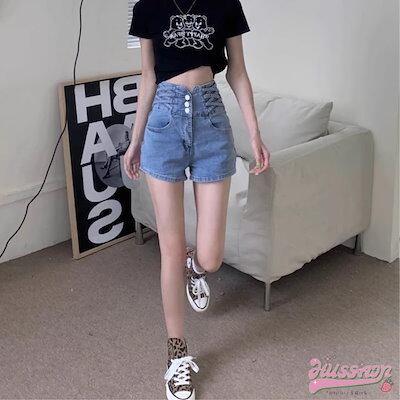 ボトムス パンツ デニム ショート レディース 夏 無地 ハイウエスト 足長効果 おしゃれ 2色展開 カジュアル お出かけ 休日 大きいサイズあり スリム