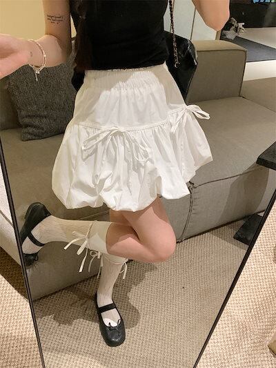 2024 夏秋 スカート かわいい ミニ丈 ハイウエストデザイン 脚長効果 美脚効果 細見えボトムス裏地付き 透け防止 夏 黒 カジュアル おしゃれ 甘め フレンチ 韓国系ファッション