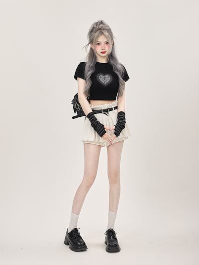 2024春夏 トップス 半袖 可愛い おしゃれ タイトフィット カットソー ラウンドカラー 重ね着丈 スリーブ 女っぽ レディース秋 Tファッション系 フェミニン きれいめ 色っぽ付き プリント