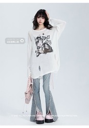 2024夏 韓国 デニムパンツ ボトムス ジーンズ ハイウエスト ファッション系ワイド スタイルサイド紐が付い ゆるダボ ジーンズ シルエット加工 レディース カジュアル メンズライク