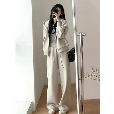 新作 カジュアル セットアップ レディース 秋冬 裏起毛 厚手 運動 パーカー スウェット ワイドパンツ 二点セット 着痩せ 大きいサイズ 裏起毛ファッション