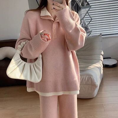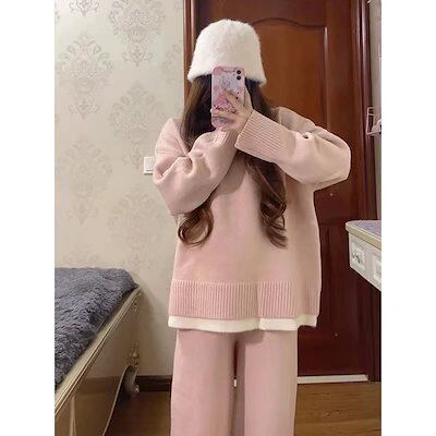 しゃれ 気質 上下レディースセットアップ ニット アウター 二点セット セーター ワイドパンツ セットアップ 通勤 長袖セーター 福袋