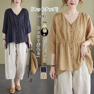 2024夏 ゆったり 大きめサイズ 100KG 二点セット 夏 気質 着痩せ セットアップ レディース カジュアル 夏服 ワイドパンツ ロングズボン ルームウェア 韓国ファッション ホームウェア