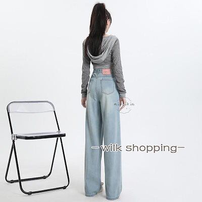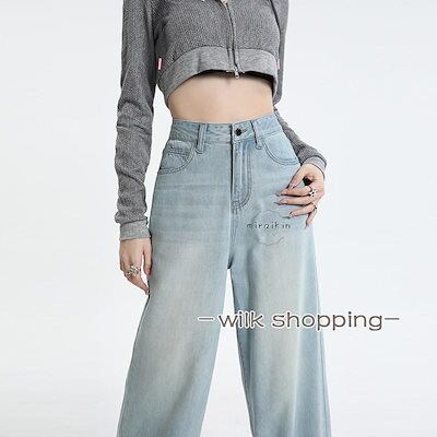 ハイウエスト ワイドパンツ デニム ストレートパンツ レディース ジーンズ デニムパンツ 春 春夏 夏 美脚 ロングパンツ ボトムス ズボン 長ズボン ライトブルー
