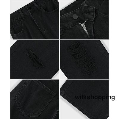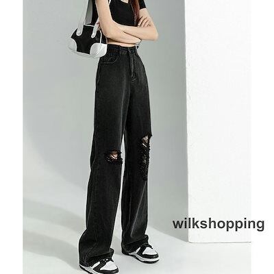 ダメージジーンズ レディース デニムパンツ ダメージ ジーンズ デニム パンツ ボトムス ワイドパンツ ワイドデニム ハイウエスト ダメージパンツ 太もも