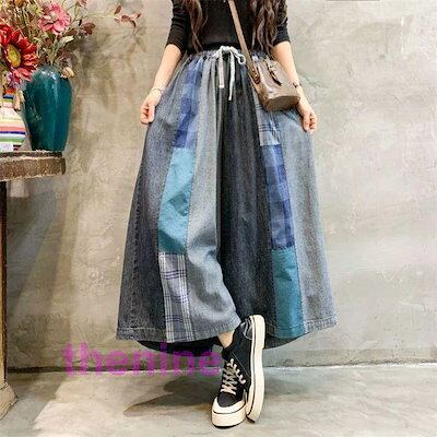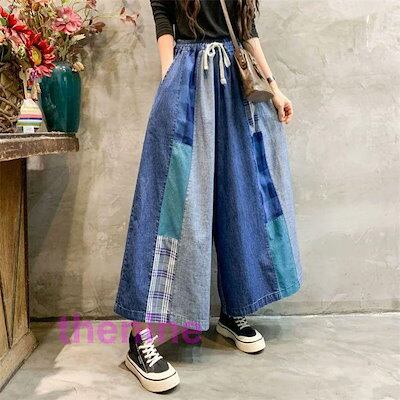 デニム ワイドパンツ レディース デニム ウエストゴム 秋 春 デニムパンツ レディース ワイド フレア デニム パンツ 大きいサイズ ゆったり ボトムス デニムパ