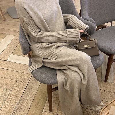 二点セット セットアップ セーター+ワイドパンツ ニット ロンT パーカー スウェットセットアップ レディース スウエット フード付き スウェット上下セット