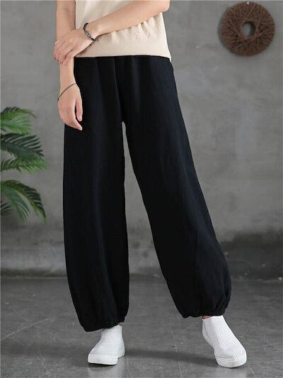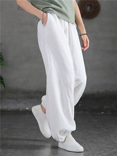 ワイドパンツ リネン コットン レディース 春 夏 綿 チノパン ワイドルーズ バギー イージーパンツ スウェットパンツ ジャージー ゆる ウエストゴム レディース ボトムス ゆったり 大きいサイズ