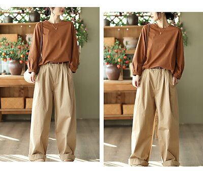 ワイドパンツ レディース 秋 きれいめ ワイドルーズ 綿 バギーパンツ イージーパンツ チノパン 美脚パンツ 長ズボン ウエストゴム ゆったり 通勤 大きいサイズ 体型カバー コットン 大人 ビジネス