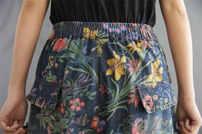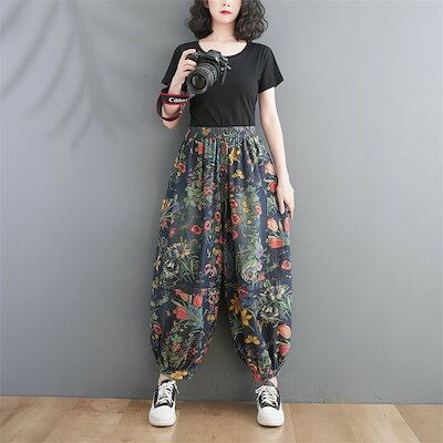 デニムパンツ 花柄 バルーンパンツ 夏 レディース デニムワイドパンツ 大きいサイズ ゆったり 9分丈 花柄 ジーンズ コクーンパンツ 柔らか ボトムス ジーパン 美脚 春夏秋 森ガール ウエストゴム