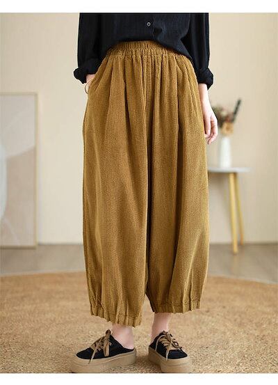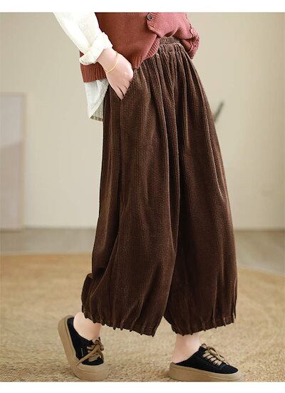 パンツ レディース ワイドパンツ コーデュロイ ボトムス バルーンパンツ チノ チノパンツ ズボン ロング ワイド ウエストゴム 秋冬 ゆったり 大人 体型カバー オーバーサイズ お洒落 きれいめ キ