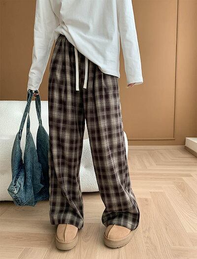 ワイドパンツ レディース チェック柄 ガウチョパンツ イージーパンツ ロング丈 パンツ ズボン ボトムス リラックスパンツ チェックパンツ 大きいサイズ ウエストゴム ゆったり 大きめ リラックス ス