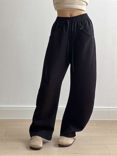 ワイドパンツ ストレートパンツ レディース ロング丈 ポケット付き 春 秋 冬 スウェット 無地 シンプル ジャージーパンツ ボトムス ストレート イージーパンツ ウエストゴム ワイド 大きいサイズ