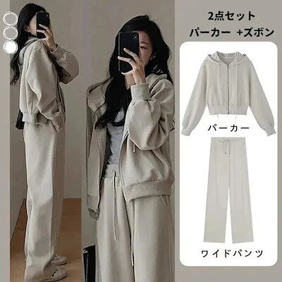 セットアップ 人気秋新作 パーカー 二点セット スウェットアウター+ワイドパンツ 無地 スウェットパンツ レディース 韓国ファッション シンプル 百掛け 四季折々着