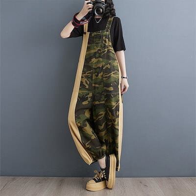 2024春 新作 コントラストカラー ゆったり 大きめ デニムサロペット レディース おしゃれ オールインワンパンツ ワイドパンツ