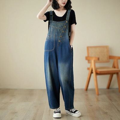レトロ デニムサロペット レディース 2024 春秋 新作 ゆったり 着痩せ オーバーオール ワイドパンツ